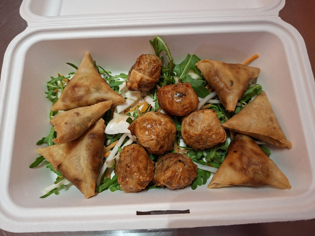 Contient 3 pièces de chaque amuse-bouche mentionné. Viande bœuf ( ou samoussas aux légumes) et de porc.
